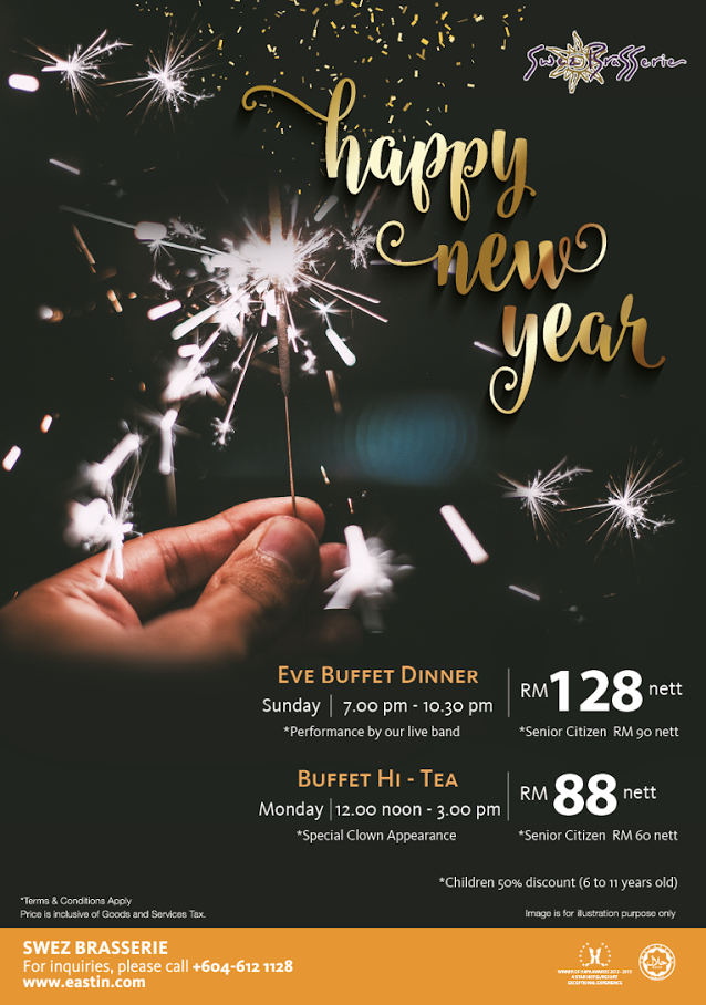 – New Year’s Eve Buffet Dinner 7:00pm-10:30pm (RM128.00 net)