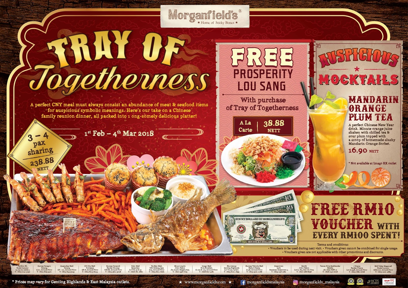The Tray of Togetherness is meant for 3 or 4 persons. The platter is available from 1 February 2018 to 4 March 2018. For every RM100.00 spent, customers are given a RM10.00 voucher to be used during their next visit.
